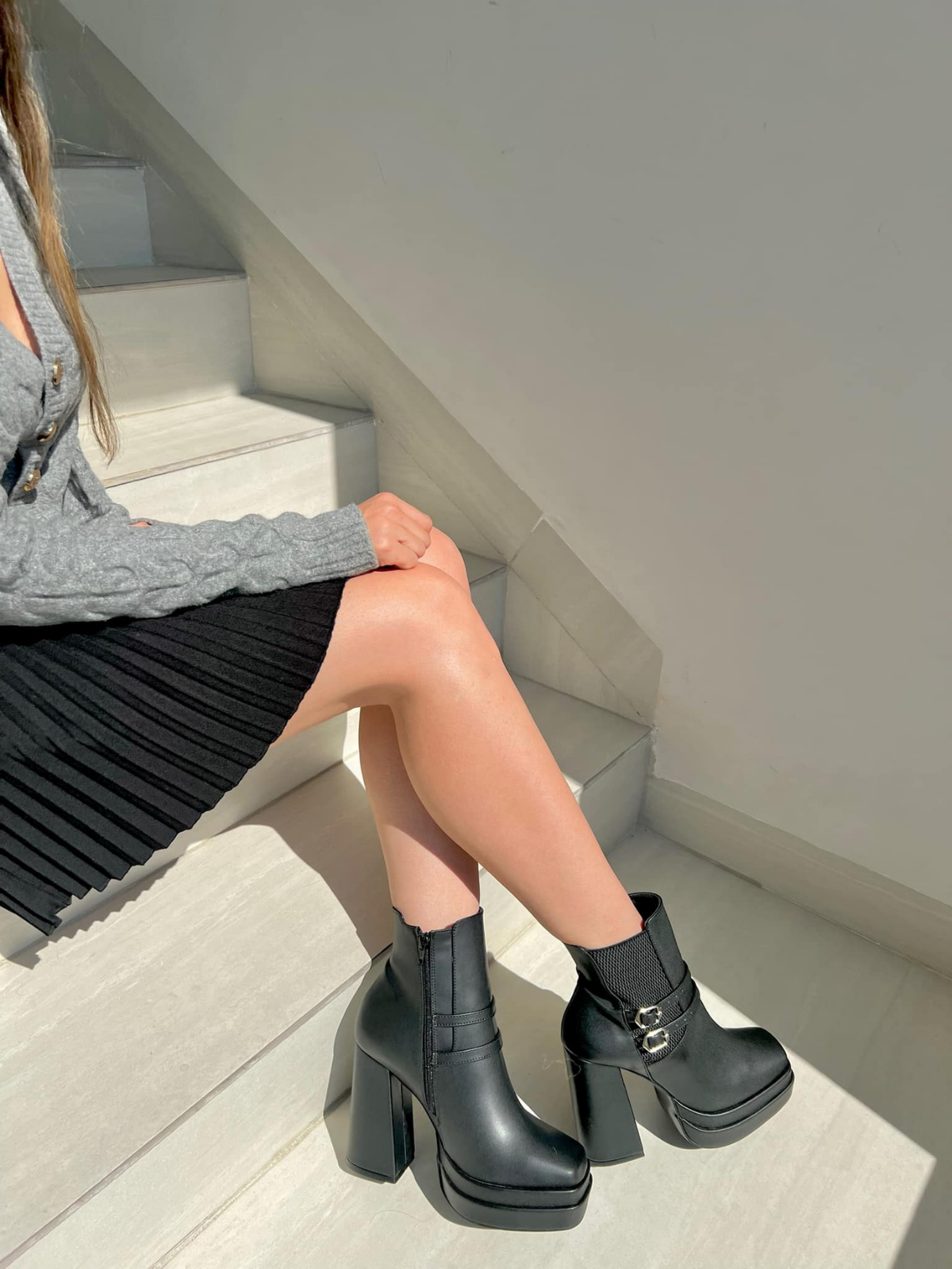 Botín negro con broches