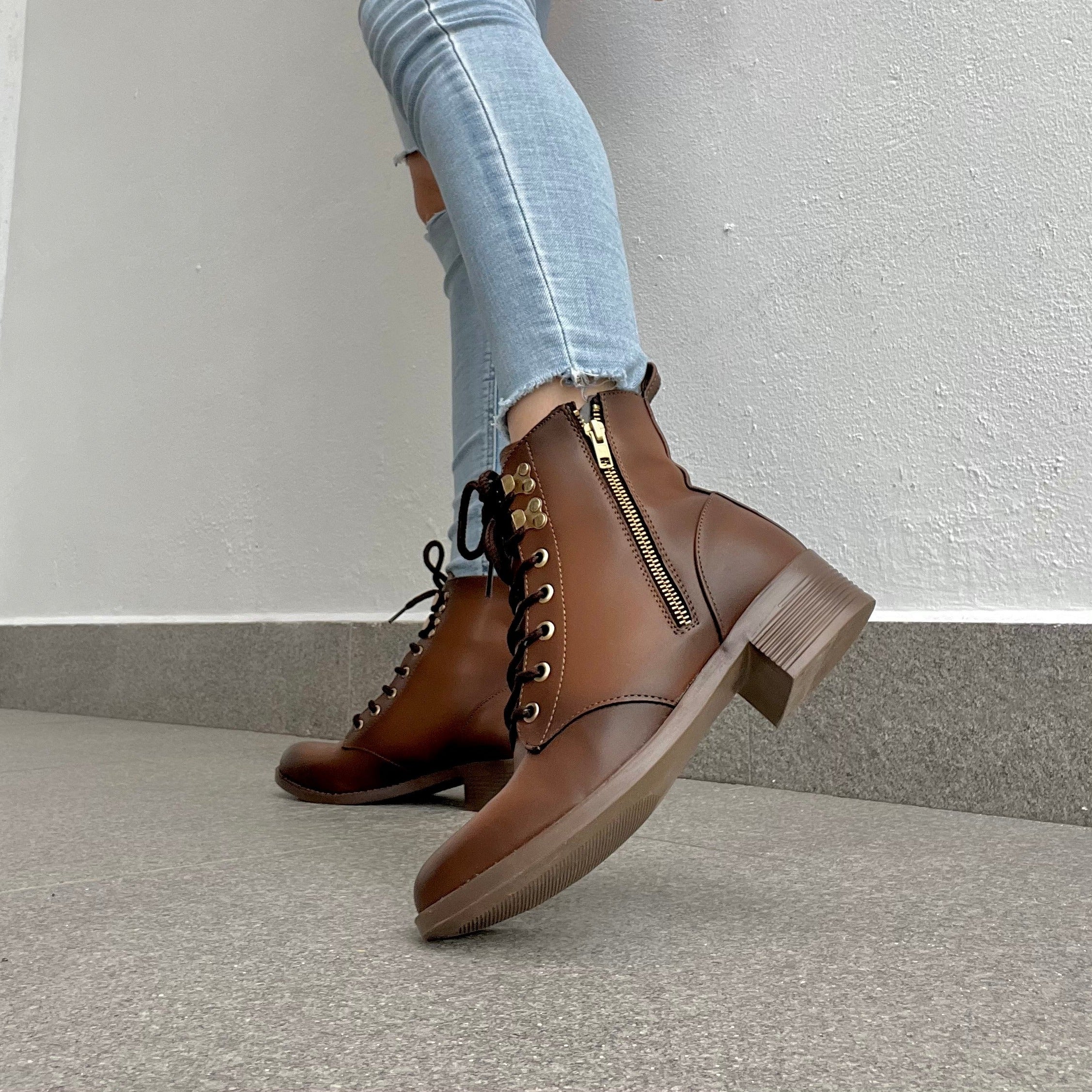 Botín Combat café cintas
