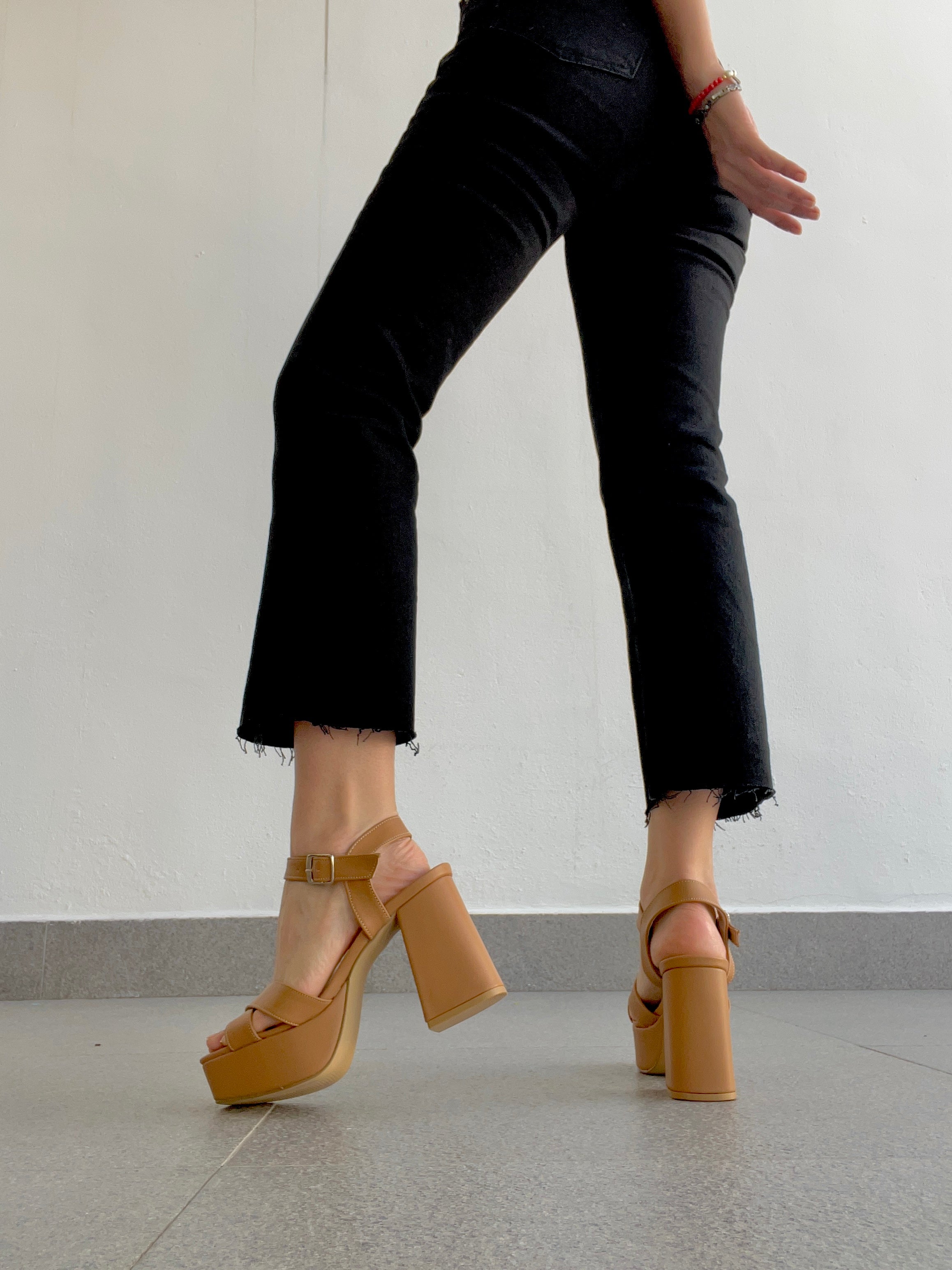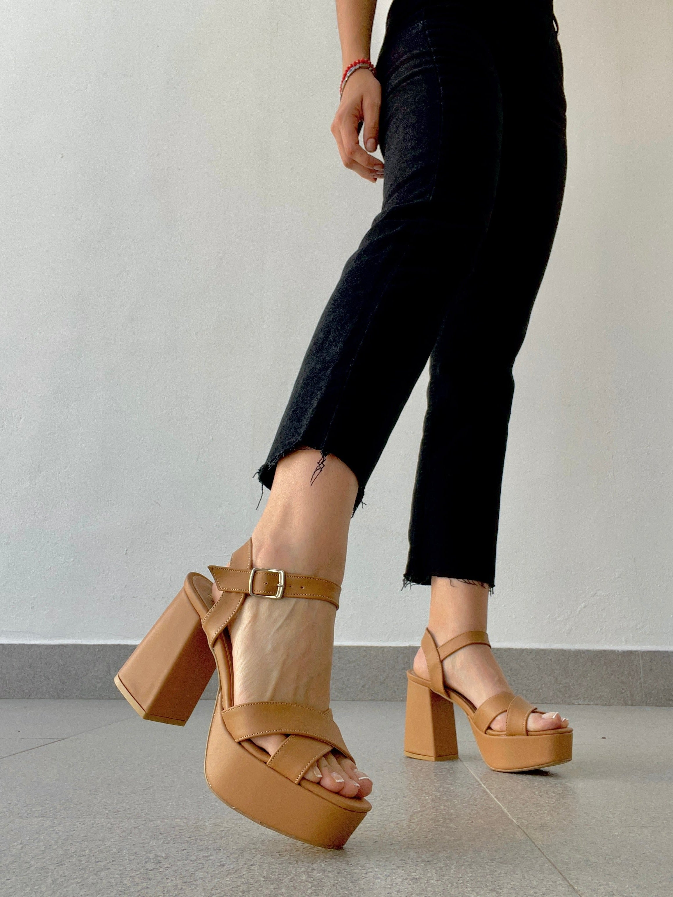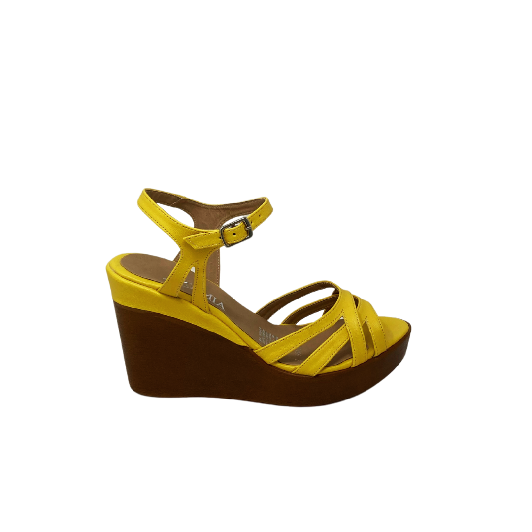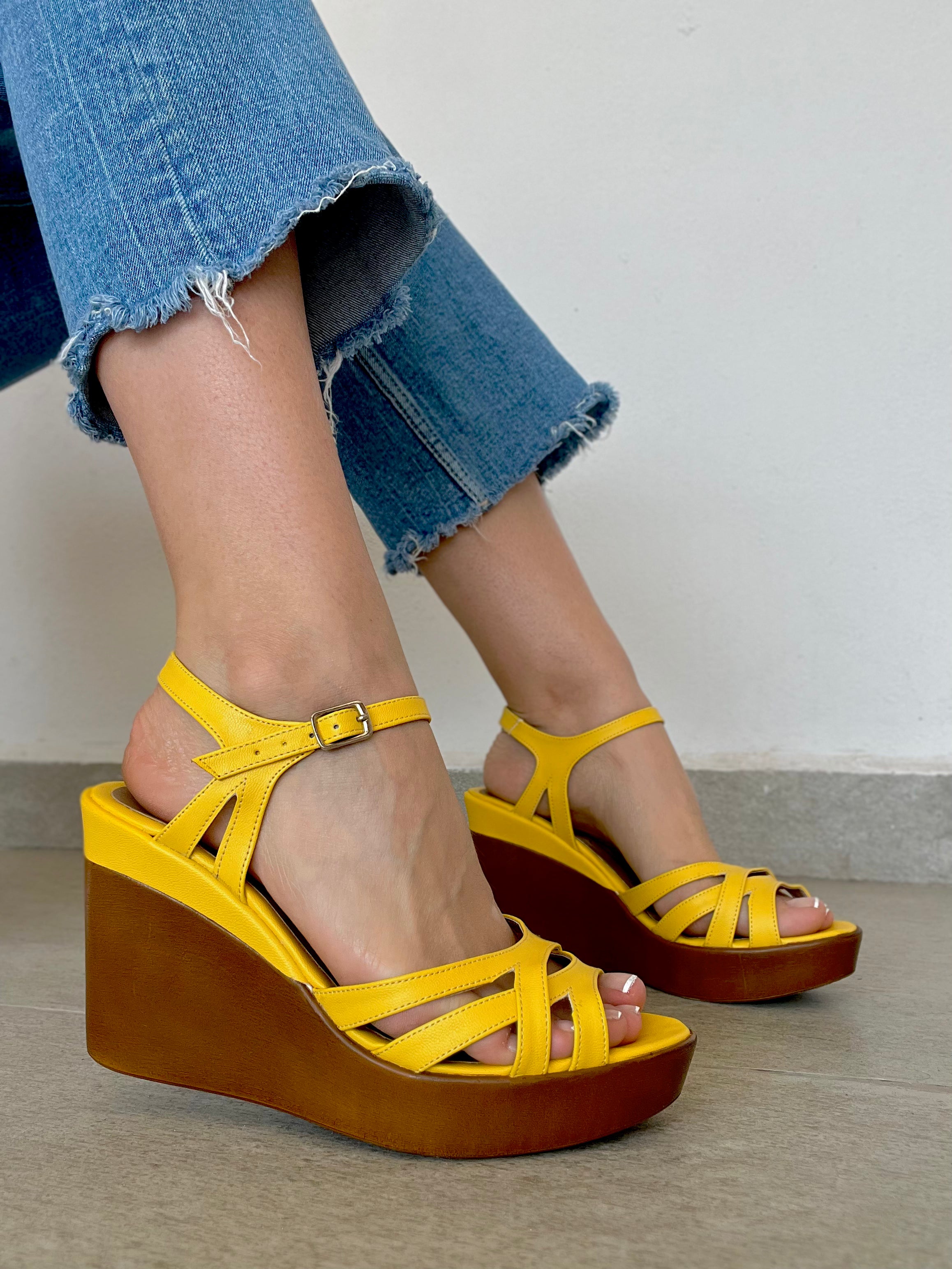 Plataforma suela cafe diseño amarillo