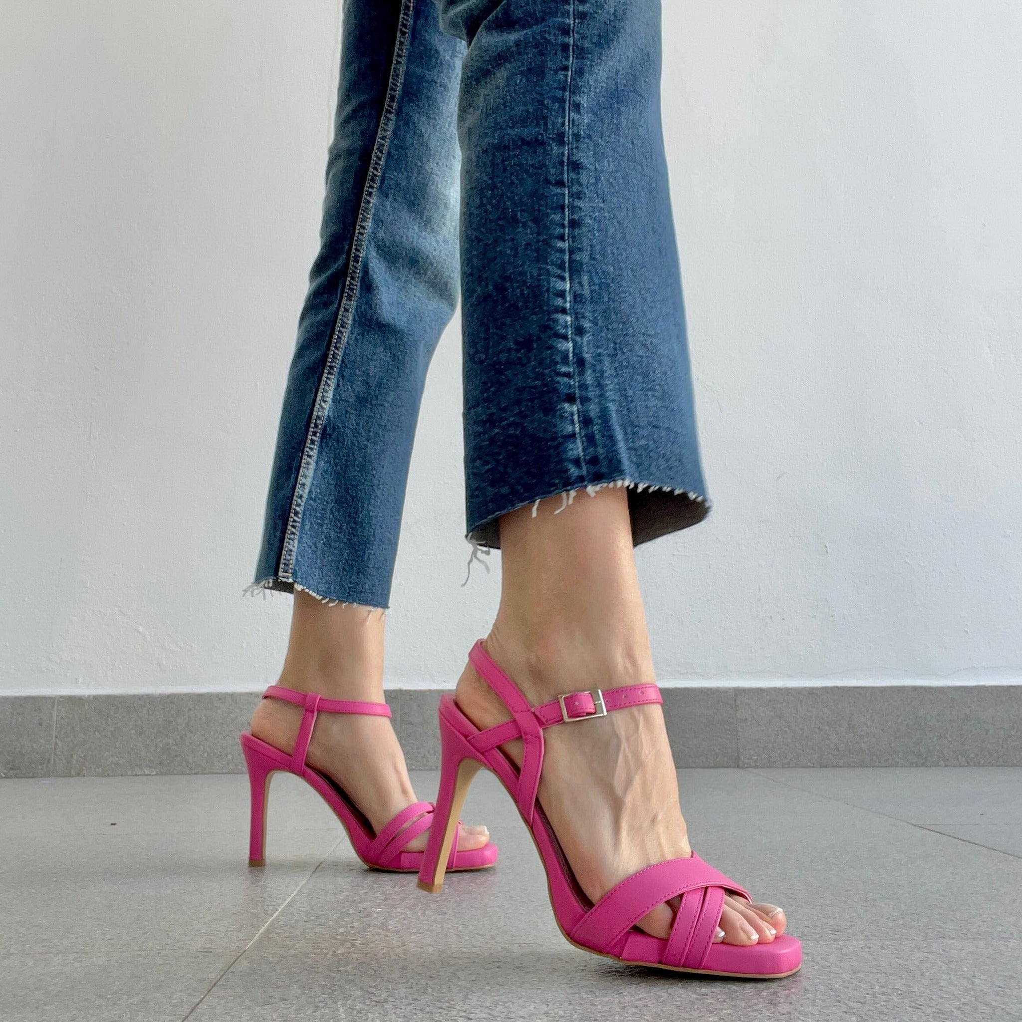 Sandalia rosa mate cruzado