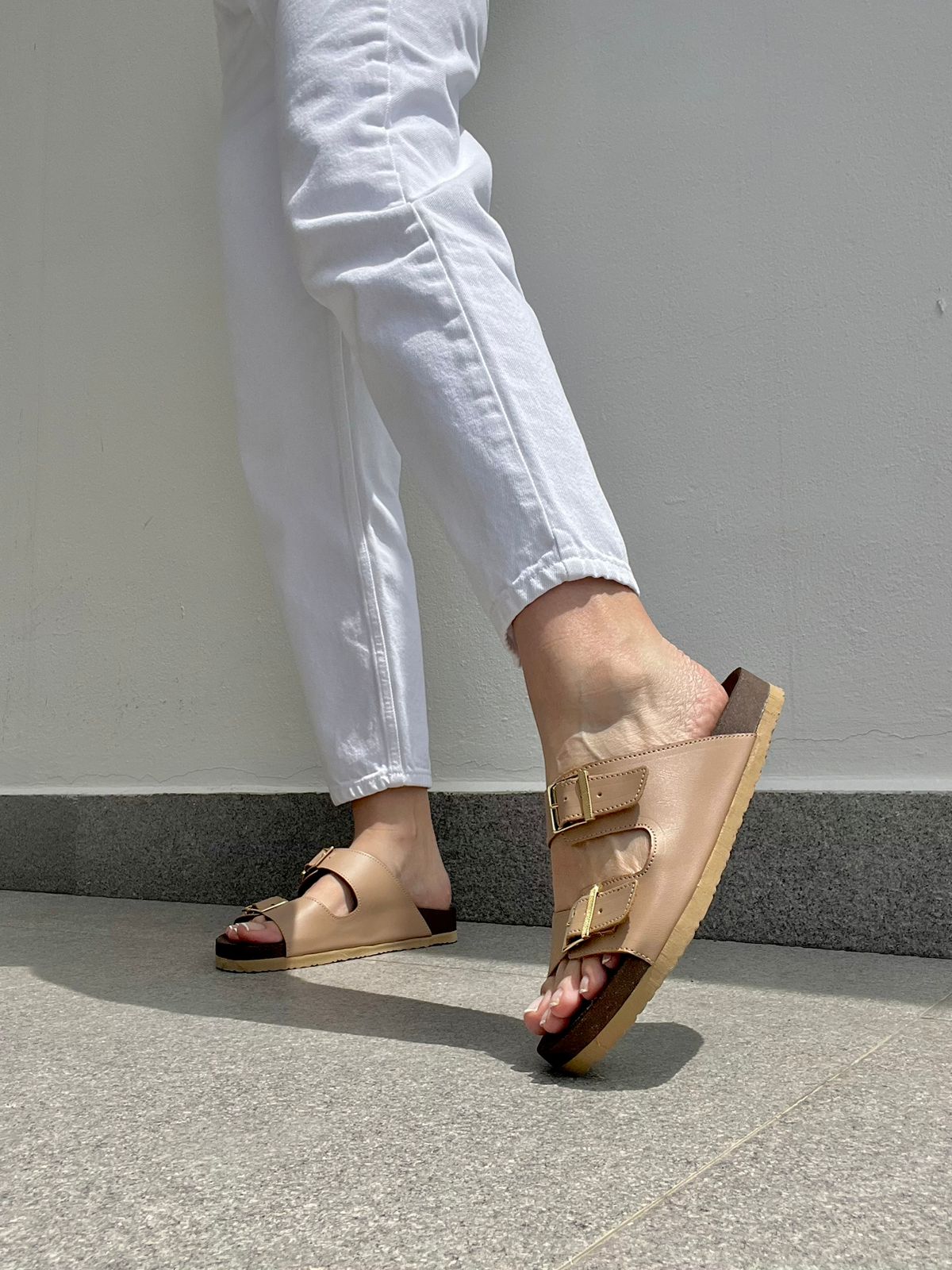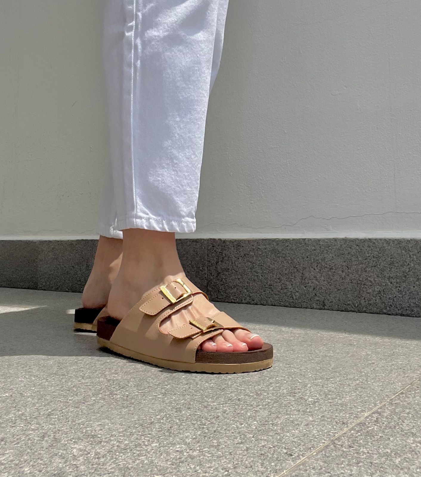 Sandalia nude de piso doble hebilla